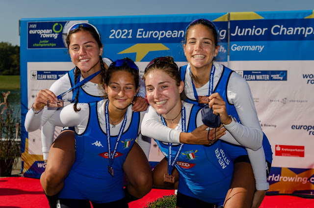 L’anno d’oro dei remi della Bissolati si chiude con un altro podio di prestigio: il bronzo agli Europei Junior a Monaco di Baviera di Susanna Pedrola nel quattro di coppia (nella foro A.Carbonara/Canottaggio.org). «Brave le ragazze del quadruplo - ha affermato il tecnico Gigi Arrigoni -. Il terzo posto è sicuramente di prestigio, considerando le avversarie. Purtroppo si sono ritrovate con la Svizzera campione mondiale in carica (argento) e una Romania stratosferica (oro). Bravissima comunque Susanna, che è sicuramente un talento con tanta possibilità di crescita futura grazie alla sua caparbietà e la voglia di migliorarsi sempre di più. Per quanto riguarda l'annata bissolatina, quale miglior centenario poteva esserci? Tutti i risultati possibili sono stati raggiunti: Olimpiadi, Mondiali, Europei, Campionati italiani hanno regalatomedaglie pesantissime. Non so quante altre società lombarde possono fregiarsi di cotanti risultati. Oltretutto, anche il vivaio è in crescita ed è ponto a sfornare nuovi campioncini. Sarà difficile scordare un anno così. Complimenti ad atleti, allenatori e a tutta la Bissolati, compreso i soci che permettono di arrivare a simili risultati». Sempre a Monaco di Baviera, ha sfiorato il podio (4ª) Elisa Marca dell’Eridanea nell’otto.